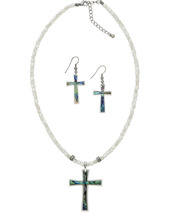 Abalone Cross Adjustable Necklace & Earrings Set 17-19" is available to buy in increments of 1