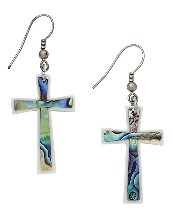 Abalone Cross Adjustable Necklace & Matching Earrings with Hooks. Necklace has lobster claw closure and adjusts from 17-19".