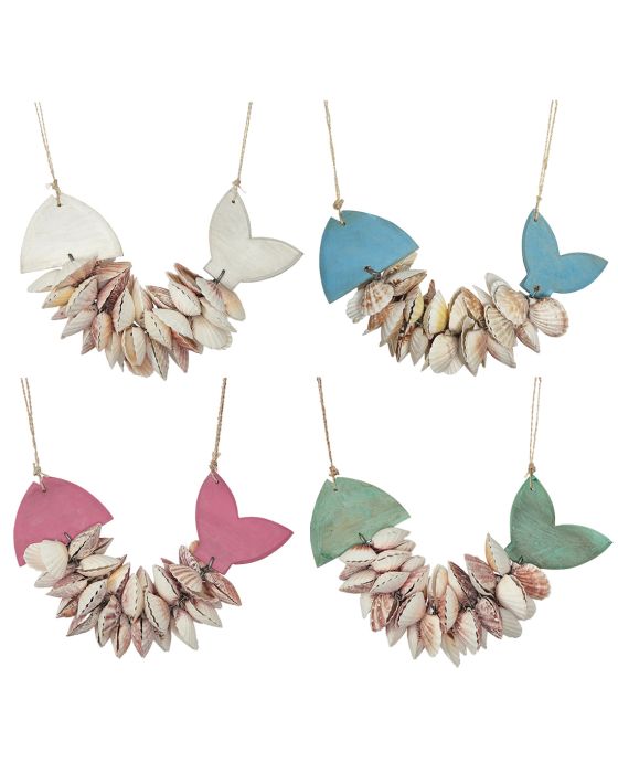 Bring the beauty of the ocean into your home with these 4 Assorted Colored Pecten Curved Fish from The Seashell Company. Each set includes four 12" fish in a variety of vibrant colors, perfect for adding a pop of color to any room. These fish are handcrafted and made with real seashells, making each one unique. Use them to decorate your mantel, hang them on a wall, or incorporate them into a beach-themed centerpiece. These Pecten Curved Fish are a must-have for any ocean lover's home decor collection.