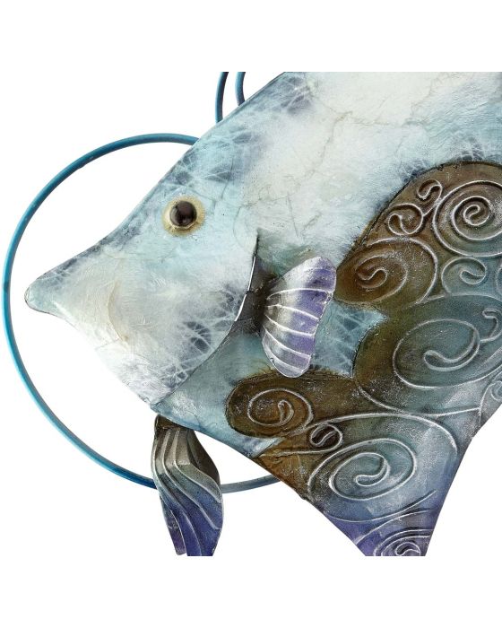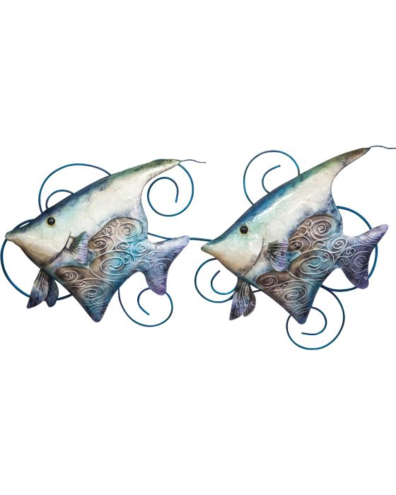 An in-house favorite, this 25" wide pair of Banner Fish will immediately move you out to sea. Inlaid Capiz Shell adds the glistening effect of iridescent scales, and blue background swirls let you know these fish have someplace to be! Home or office decor for yourself or a great gift.