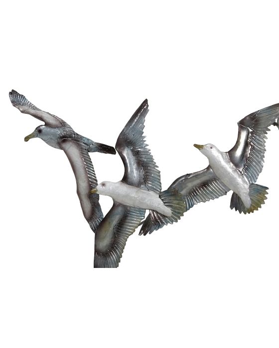 Bring the beauty of the beach into your home with our Capiz & Metal Seagull Flock Wall Art. This stunning piece features a flock of seagulls in flight, crafted from durable metal and delicate capiz shells. The white and dark grey color palette adds a touch of flair to any space, while the 10.5x20.5x3" size makes it perfect for hanging on any wall. Whether you live by the coast or just love the nautical aesthetic, this wall art is a must-have for any home. Add it to your collection today and bring a touch of coastal charm to your decor.